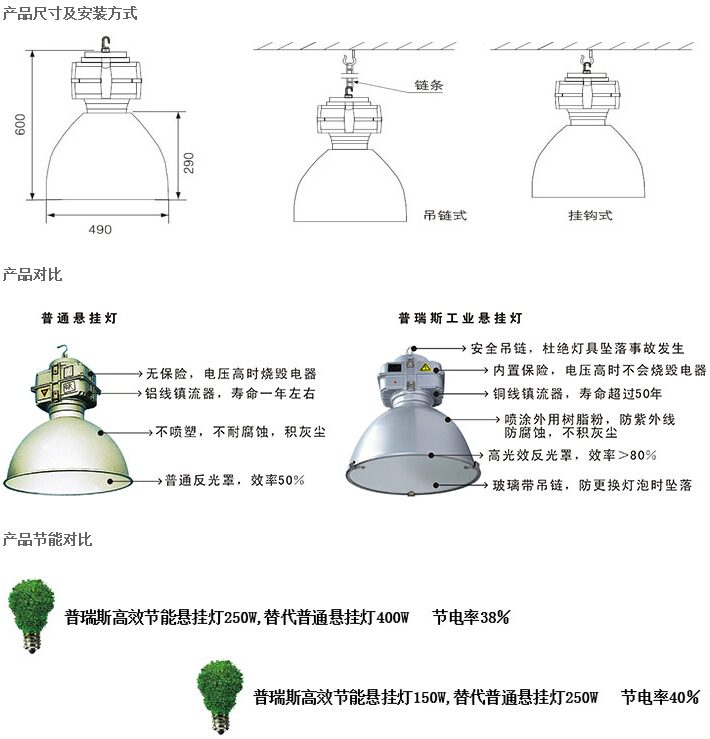 》镇流器:通过CE,CCC认证的带过热保护镇流器,防止光源寿命终结时产生的整流效应而导致意外发生。
